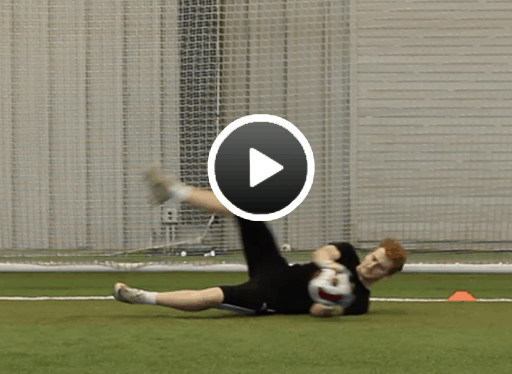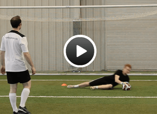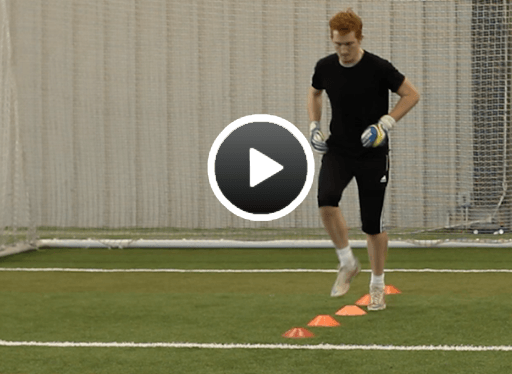 How to: The goalkeeper is tested here on their diving ability, reaction and recovery time and agility. The keeper moves towards one cone and knocks it over, once the cone has been knocked down a player is allowed to shoot on goal. The keeper then moves to knock another cone over and attempts to save the resulting shot. Play resumes until all the cones are knocked over.