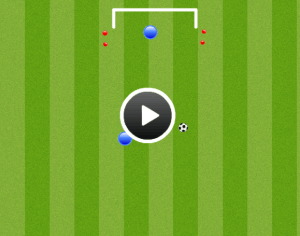 Dimensions: One goal and a supply of soccer balls around the penalty spot. Set up 4 tall 9” cones two by either goalpost. One keeper occupies the goal, one player gets ready to shoot the balls.