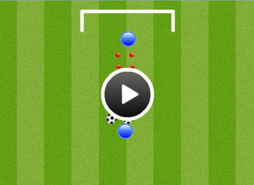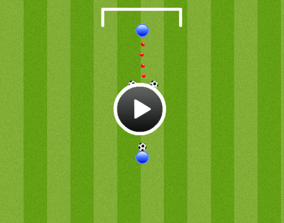 Dimensions: One goal with a ball placed on the 18 yard line. Place a number of cones 1 foot in front of the other leading towards the penalty spot. At the end of the row of cones place two soccer balls on cones just shorter than arms length apart (adjust that distance on your own players arm span)